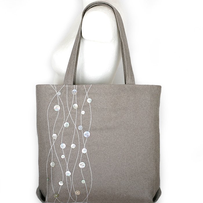 Mając w pamięci powodzenie torby ’Lniane fale – multi’, która została błyskawicznie wręcz kupiona przez Panią Małgorzatę, a raczej jej męża 😉 uszyłam kolejne dwie torby w podobnym stylu – tym razem z beżowej wełny.