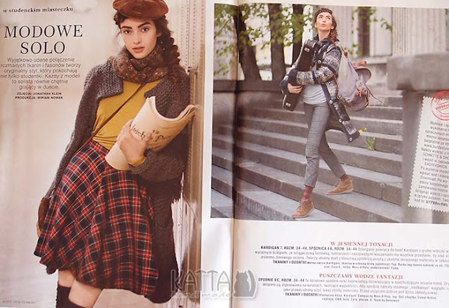 ’Modowe solo’ to niemal instrukcja, jak powinna wyglądać klasyczna studentka 😉 – mnóstwo fajnych rzeczy – między innymi, kloszowa spódnica, bluzka z długimi rękawami z dziurką na palec i sukienka z dżerseju.