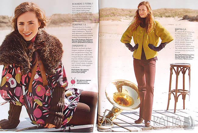 Wiadomo, w wydaniach na zimne pory roku jest dużo modeli płaszczy i kurtek. Tak jest i w tym, ciekawa jest propozycja trzech, różnych stylizacji z tą samą kurtką, na którą wykrój jest oczywiście w tym numerze. Wpadły mi też w oko spodnie z tweedu z założonymi getrami z tej samej tkaniny. Jest też kilka propozycji imprezowo-sylwestrowo-eleganckich – i w tym dziale rządzi spódnica 6 z połyskliwej satyny jedwabnej. A, jeszcze to, co tygrysy lubią najbardziej – torba do ręki z czarnej, połyskliwej plecionki 🙂