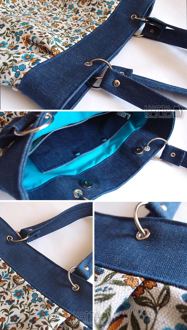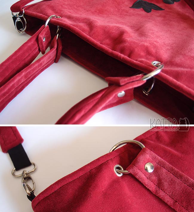Widać na nich także zapowiedź torbowych ozdób – satynowych kwiatów oraz nowego mocowania uchwytów w moich torbach. Zaopatrzyłam się w odpowiednią końcówkę do prasy kaletniczej, w metalowe oczka i kółka i otworzył się przede mną świat pasków/uszu/uchwytów mocowanych w ten właśnie sposób.