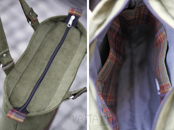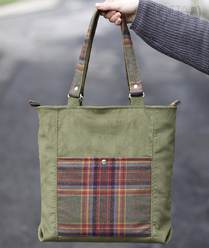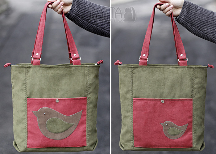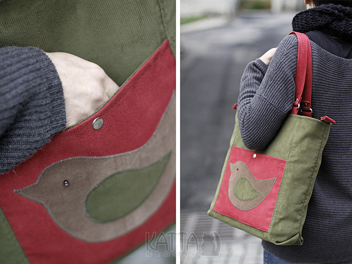 A na deser jeszcze dwie torby, które powstały w poprzedniej sesji. Tkaniną bazową jest tutaj oliwkowy sztruks – taki idealnie jesienny 🙂