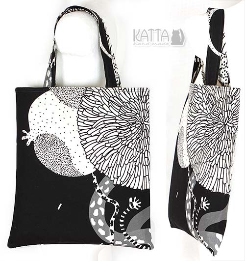 Z tematów mniej makabrycznych pokażę serię prostych toreb na ramię, lub po prostu siat do taszczenia różnorakich wynalazków – zakupów, książek, ekwipunku małego bejba itp. 😉 Prostota i użyteczność totalna – 2 w 1, jak to mówią.