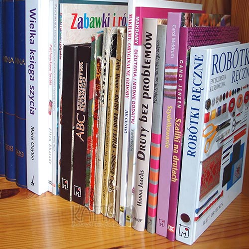 Ten ostatni sposób poszukiwania ciekawych książek, nie tylko robótkowych – szczególnie Wam polecam. Kiedyś przez przypadek trafiłam na moment, gdy w bibliotece powiatowej robiono porządki i miejsce na nowe tytuły, pozbywając się starych, rzadko wypożyczanych książek. Miałam niesamowite szczęście i mogłam sobie przejrzeć, to co miało iść na przemiał.
