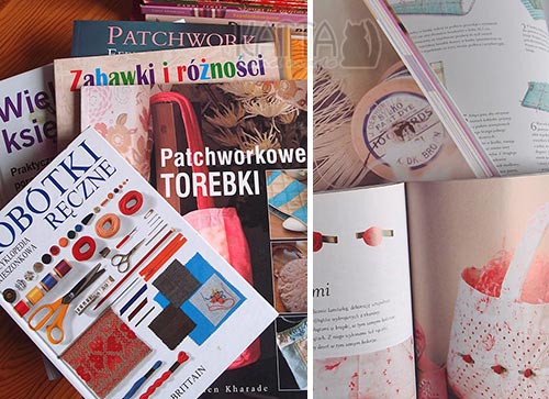 Wtedy po raz już nie wiem który przeglądam moją literaturę branżową 😉 szukam nowych pomysłów, rozwiązań i inspiracji. Podziwiam piękne zdjęcia i aranżacje. Oj, jak ja to lubię. Mam kilka swoich ulubionych pozycji np.: „Robótki ręczne” Judy Brittain, „Roboty i robótki na zimowe wieczory” Stanisławy Podgórskiej, czy „Patchworkowe torebki” Ellen Kharade.