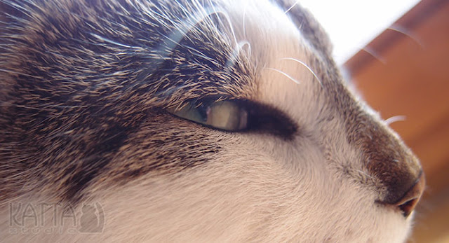 Niedzielne leniuchowanie dopadło także pracownianego kota – czyli Mikusia. Ostatnio nie pojawiał się na blogu, bo trudno było go dopaść z aparatem – prawie całe dnie spędzał w terenie. Ale jesienne chłody dały mu się we znaki i w ostatnich dniach nieraz ucina sobie drzemkę w zaciszu pracowni – i tak też było dzisiaj. Oto kot z lekka rozkojarzony, bo wyrwany ze snu 'cykaniem’ aparatu 🙂