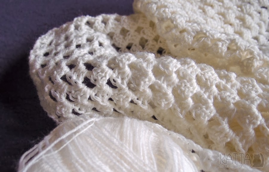 Ja wzięłam się za dzierganie szydełkowe w ramach płodozmianu technologii pracy. Robota idzie mi całkiem żwawo, choć z doskoku. Dostałam w spadku sporą ilość cienkiej kremowej włóczki, która szepnęła mi do ucha – 'chcę być dużą trójkątną chustą’. Czy ja mogłam odmówić?