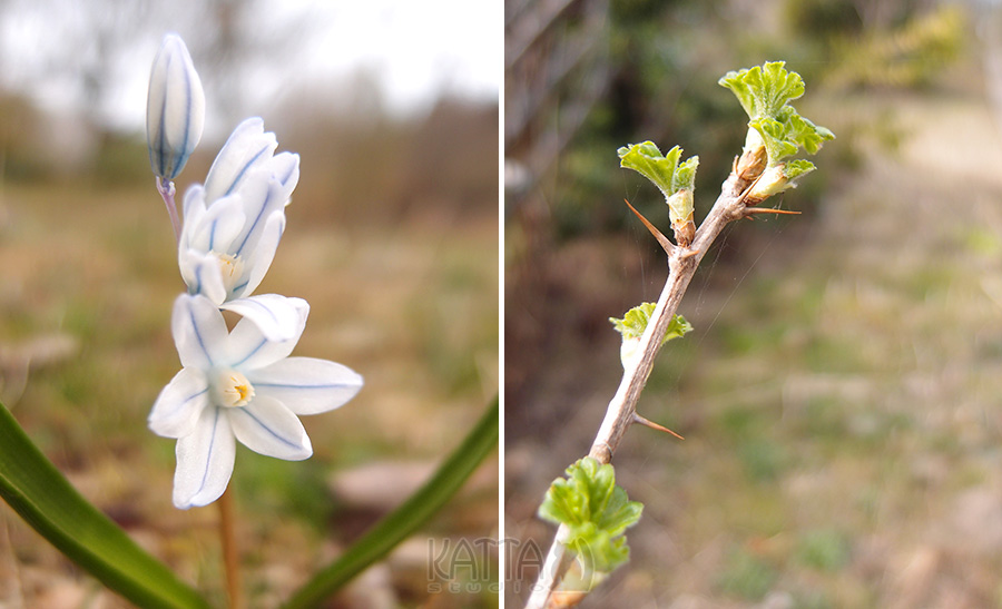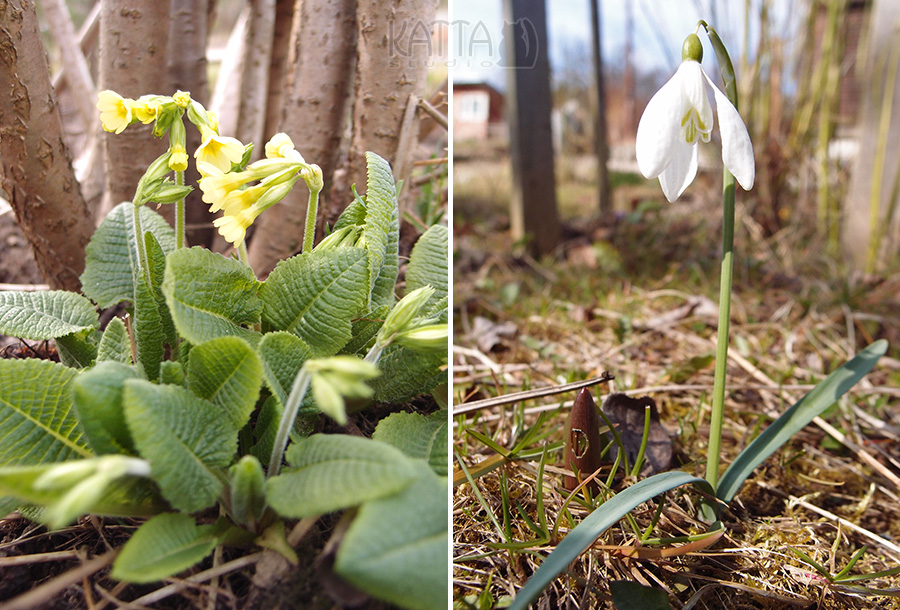 Widok kolorowych, kwiatowych punkcików w szarobrunatnym tle ogólnym jest niesamowity. Widziałam, że u większości działkowych sąsiadów pierwszowiosenne kwiatki posadzone są w grupach, tworząc coś na kształt kolorowych dywaników. A u mnie, nie wiedzieć czemu są porozrzucane pojedynczo. Wygląda to dość zabawnie, tak jakby kawałki kolorów wypadły komuś przypadkiem z kieszeni 😉 No i trzeba się pilnować, że by któregoś maluszka przypadkiem nie podeptać.